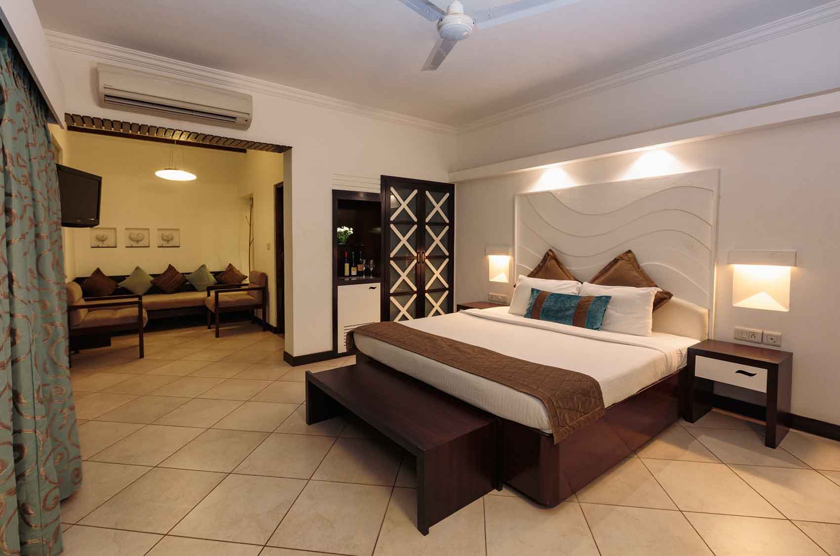 | Premium Room - Spacious double/twin bedded room with independent private balcony, overlooking pool/garden. | Villas - 3 bedrooms a living and dining room split on 2 levels. |